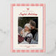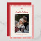 Celebrate the season in style with this luxurious foil-accented holiday card, featuring classic red and cream stripes and a charming red bow for a touch of festive flair. Personalize it with a cherished family photo to create a keepsake your loved ones will treasure. Printed on high-quality cardstock with shimmering foil details, this card blends timeless elegance with heartfelt warmth—ideal for spreading joy to friends and family. This holiday greeting card has a traditional cozy feel and you can choose between three different foil colours. Our thoughts are that the card looks pretty with the silver and rose foil but the choice is all yours. Choose your best photo and include your family name. The back has been left purposefully blank for you to include your own seasonal handwritten note if you so choose.