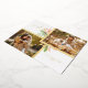 Lovely two-photo template with gold foil frames, pastel watercolor leaves and berries and editable "Joyful" calligraphy script and text fields. Back features complementary gold-framed floral label and additional text fields.