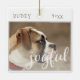 Joyful Script Dog Pet Christmas Photo Ornament. Modern holiday design with a script joyful that overlays the photo - add your dog`s photo. Add your name and year and make a sweet keepsake or a gift.