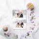 Modern minimalist holiday design featuring top and bottom photo templates with centre white snowflake brushstroke, silver foil "Joyful" script calligraphy and editable text field.