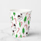 These festive paper cups feature a bright, childlike Christmas pattern of snowmen, candy canes, and trees — perfect for cocoa, cider, or office coffee breaks that feel extra merry.