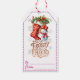 These delightful gift tags celebrate the spirit of Christmas with cheerful designs, showcasing a jolly snowman and festive stockings adorned with holly. Perfect for adding a personal touch to your holiday presents, spreading joy and warmth.