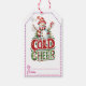 Des étiquettes cadeaux de Noël lumineuses et colorées présentent un bonhomme de neige gai orné d'un foulard rayé et entouré d'une verdure festive. Le message amusant Cold Cheer capte l'esprit de fête, parfait pour ajouter une touche personnelle à votre don.