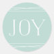 Modern and minimal but still totally festive, our holiday stickers feature "JOY" in white handwritten style block lettering on an icy mint green background, accented with thin crisscrossed bands of white at the top and bottom. Designed to match our Joyful Symmetry card collection.
