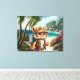 Joyful Tiger Cub with Backpack and coffee Canvas Print
