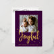 Joyful Typography Script Modern Photo Christmas Foil Holiday Postcard
