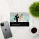 Joyful" in modern calligraphy script typography. Personalized with a simple message below. Perfect for family and friends to celebrate your 1st Christmas as Mr and Mrs. PHOTO TIP: centre your photo prior to uploading to Zazzle. Designed by ©Evco Studio www.zazzle.com/store/evcostudio