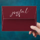 Joyful White Script Burgundy Return Name AddressFor 5 x 7” cards and invites. Easily personalise with your name and return address. Joyful is in a modern playful set script in white on the back flap which can be changed to another colour if you so wish via the Edit further option where you can also make other edits as required.