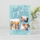 Spread joy and happiness this year with a card that pops! Featuring whimsical modern calligraphy script that says "joyful" on a textured blue background and accented with white snowflakes and snowfall. Customize your photos, your family names and individual names. On the back, there is a pattern of white snowflakes and stars that matches the front. faux Silver foil frames and highlights your photos