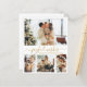 Modern Joyful Wishes Script 4 Photo Collage Christmas Thin Card in Gold and White. This minimalist Christmas card features a 4 photo grid collage on the front and an extra photo on the back. The "Joyful Wishes" greeting is elegantly hand-lettered in gold calligraphy on a clean white background, offering a chic and modern touch to your holiday message. The back includes a customizable greeting template with a heart doodle motif and space for one additional photo. Perfect for sharing festive cheer with family and friends, this personalized card is an ideal way to celebrate the holiday season in style.