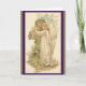 Put your own message inside this beautiful Easter card. The outside shows an angel with arms around a flower covered cross and "A Joyous Easter" at the top right. Border of card is a deep purple and an antique green