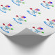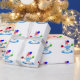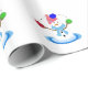 This wrapping paper is adorned with a whimsical winter design, showcasing an adorable snowman perched on a ring of ice, playfully juggling three colourful balls. He is dressed in a warm toque and scarf.