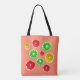 Cute and colourful slices citrus fruit pattern with illustrations by Sacha Grossel of lemon, pink grapefruit and lime fruit slices in a fruit punch citrus salmon colourful pattern. Summery and bright, this is kitsch and juicy.