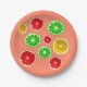 Cute and colourful slices citrus fruit pattern on a almon pink background with illustrations by Sacha Grossel of lemon, pink grapefruit and lime fruit slices in a fruit punch colourful pattern. Summery and bright, this is kitsch and juicy.