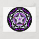 Fifteen crows around a white pagan pentacle on a field of purple with central purple jewel. Jewels representing the elements with silver celtic triquetra knotwork.