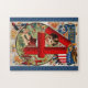 11” x 14” jigsaw puzzle with a vintage 1908 image of a young boy sitting in a circle on the grass surrounded by fireworks, some that are lit, and a fired canon. His head is framed by a number four made with red firecrackers. At the top, there is a blue banner, an American bald eagle, an American flag shield, and “July” in gold letters. See the entire Independence Day Puzzle collection under the HOME category in the HOLIDAYS section.