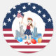 July 4th Birthday Girl with USA flag Classic Round Sticker