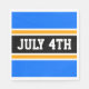 This athletic patriotic design features bold JULY 4TH text inside a highlighted wide black stripe with white and yellow pinstripes bright blue outer stripes. The text in this design can be personalized.