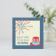 Fun and charming July 4th Fireworks Invitation featuring a bold dark blue border, vibrantly coloured fireworks and a patriotic hat. This great design is a great pick for your next Independence Day party. Easy to customize, simply add the details of your fabulous Fourth of July gathering in the fields provided.