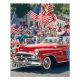 Design an image featuring a vintage-inspired 4th of July parade with classic cars, marching bands, and spectators in retro attire.