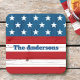 July 4th Rustic Wood American Flag Patriotic Name Square Paper Coaster
