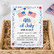 A patriotic festive design for a Fourth of July invitation featuring American Flags is perfect for a backyard BBQ party this Independence Day. You can change the text/font/colours.