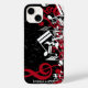 Jumbled Music Notes Red Grey and White on Black Case-Mate iPhone Case