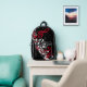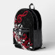 Jumbled Music Notes Red Grey and White on Black Printed Backpack