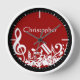 Jumbled Musical Notes White on Red Wall Clock