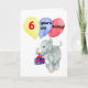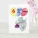 A birthday card for a 6 yr old with a handpainted baby elephant carrying a gift and balloons. 'Happy Birthday' inside.