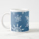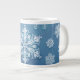 It has a jumbo mug. It has a snow cyrstal pattern design.