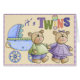 Un bébé et une fille byby soutiennent avec une voiture d'enfant pour féliciter dès l'arrivée des bébés jumeaux. Le wordart coloré la place, "je" dans des "jumeaux" est un hochet de bébé ! Ceci a pu également être employé car une carte pour annoncer la naissance de deux bébés merveilleux.