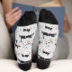 Perfect for any cat lover, these fun socks feature cute pattern of black and white cartoon cat images jumping across the surface. In addition to the jumping cats are cartoon cat faces. Everything is placed on a light grey background.