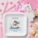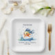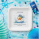 Add a splash of aquatic fun to the party table with these decorative paper plates, featuring a cute jumping fish illustration in a watercolour style. With caption 'Birthday wishes swimming your way' below the picture, the plates can be personalized with a name at the top.