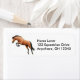 Original fine art design of a jumping bay horse by designer Carolyn McFann on customizable labels for equestrian sport fans.
