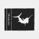 Jumping White Marlin Silhouette On Black With Name Blanket. Personalize your blanket by typing your name into the text box.