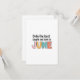 The word : JUNE , is displayed in large, colorful, playful block letters with a pastel palette, making it stand out as the focal point of the design.