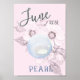 The Pearl, June’s birth gem, stands for wisdom, beauty, and happiness. Primarily pink with some pearl blue tones.