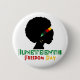 Celebrate Juneteenth with pride and style with this Juneteenth Freedom Day Button. Featuring a powerful silhouette of a woman adorned with a colourful headband and heart-shaped earring in the colours of the Pan-African flag, this button is a beautiful tribute to the significance of Juneteenth. The vibrant and bold text, "Juneteenth Freedom Day," highlights the importance of this historic day.