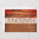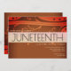 An invitation for a Juneteenth celebration. The invite has an orange, brown, black scheme. Customize the text, add this invitation to your cart, and celebrate freedom, ancestors, and the progress to come.