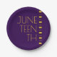 Juneteenth celebration holiday paper plates. The plates have a purple and yellow colour scheme.