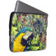 A watercolor painting of a blue yellow macaw in the jungle laptop case.