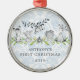 Cute baby's first Christmas ornament the sweetest little jungle animals set on a blue damask background.