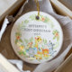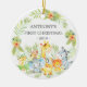 Cute baby's first Christmas ornament the sweetest little jungle animals framed with watercolor jungle leaves.