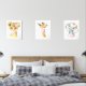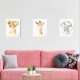 Add the finishing touches to your baby’s nursery or child’s bedroom with these gorgeous art prints! Design features jungle animals (lion, giraffe, elephant), pink bubble gum, pink watercolor flowers and greenery.