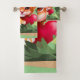 It was advertised as NAVY blue and the color sent was greenish blue. I am disappointed in this product. Quality and printing are great as are all my other orders. As you can see in picture the tea towel on right is perfect, hand towel not so much! Print was awesome and just as ordered