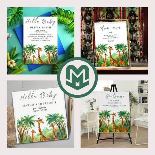 Jungle Giraffe Cute Elegant Hello Baby showerDesigned by Max Marshall