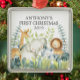Cute baby's first Christmas ornament the sweetest little jungle animals framed with watercolor jungle leaves.