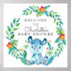 Welcome your guest in style with our cute baby shower welcome sign featuring a cute blue rhino framed with jungle leaves.