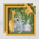 A graphic design of jungle animals on a cute Safari Birthday (or any) Party invitation. The invite has text templates for your personalization.